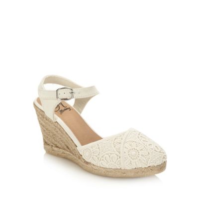 Image Name: Mantaray Cream crochet high wedge sandals- at Debenhams